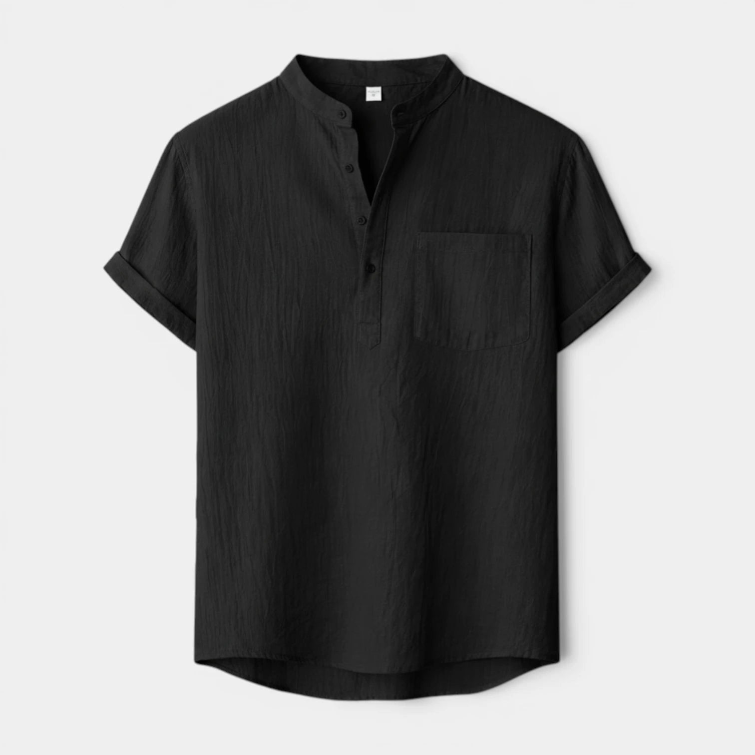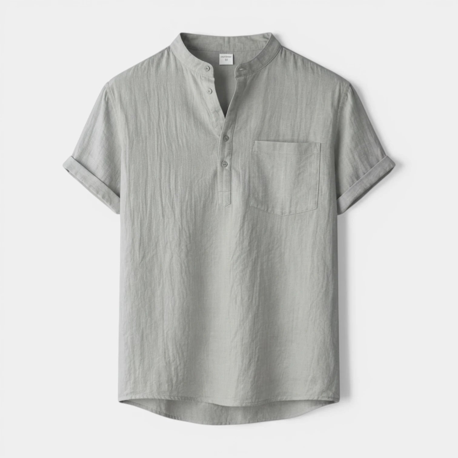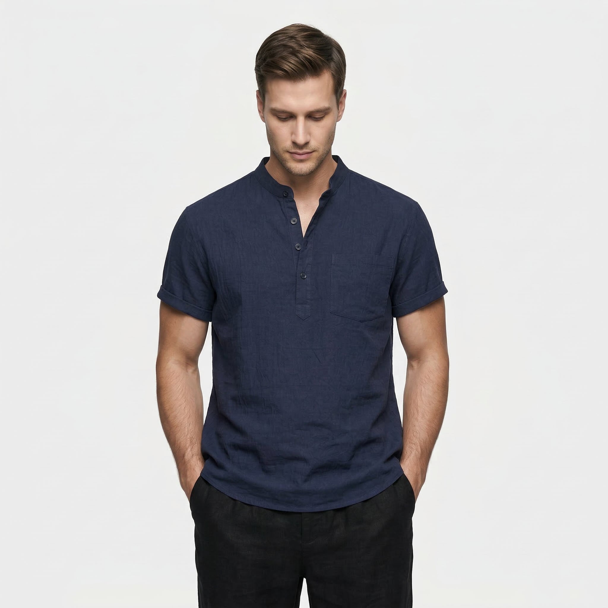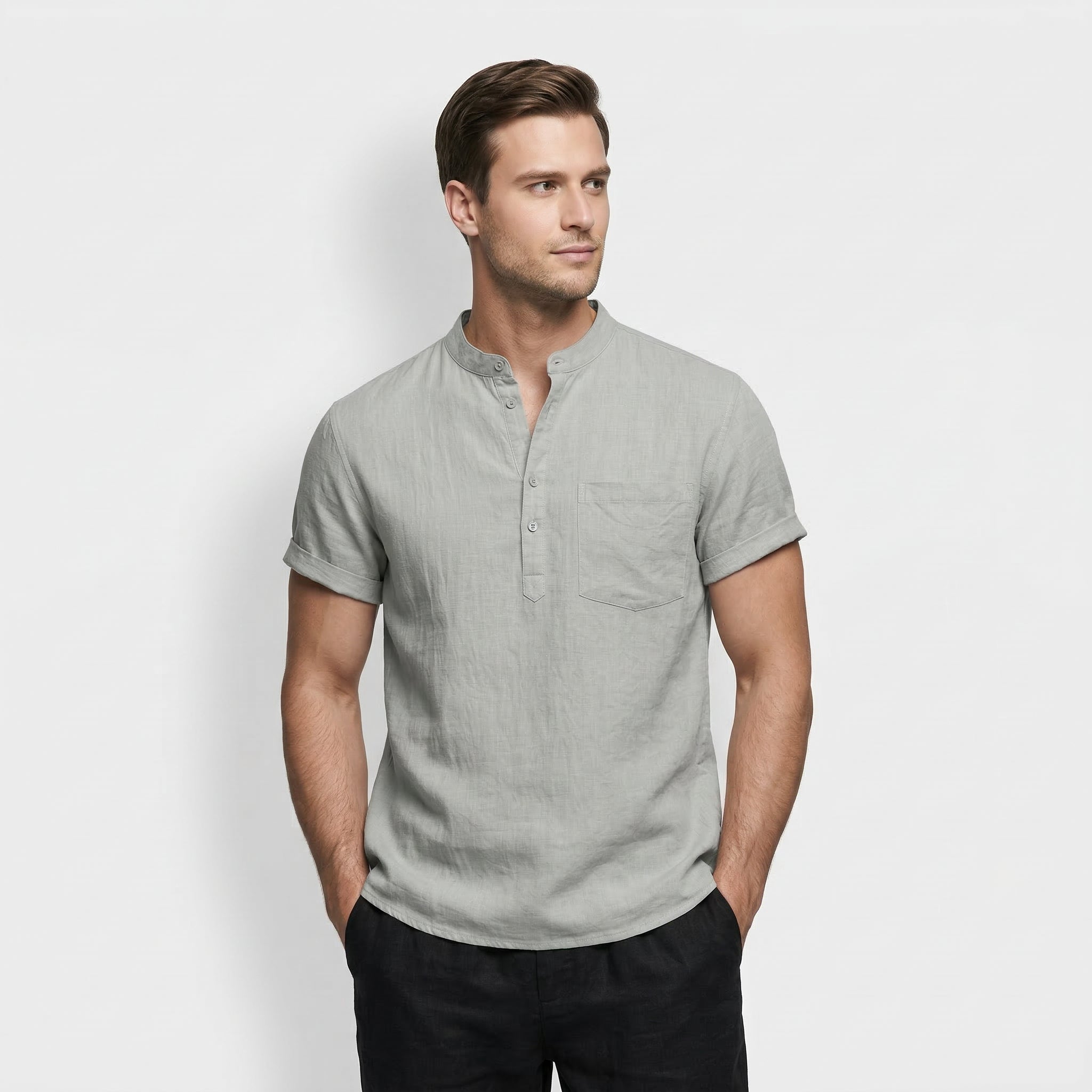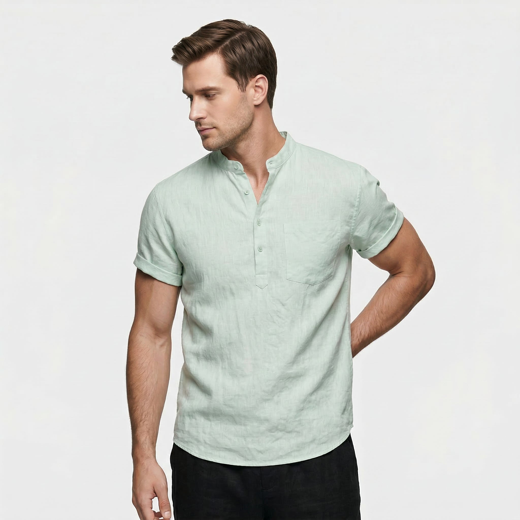 Men's Short-Sleeve Mandarin Collar Shirt with Chest Pocket