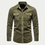 Men's Military Style Long Sleeve Shirt Chest Pockets Relaxed Fit
