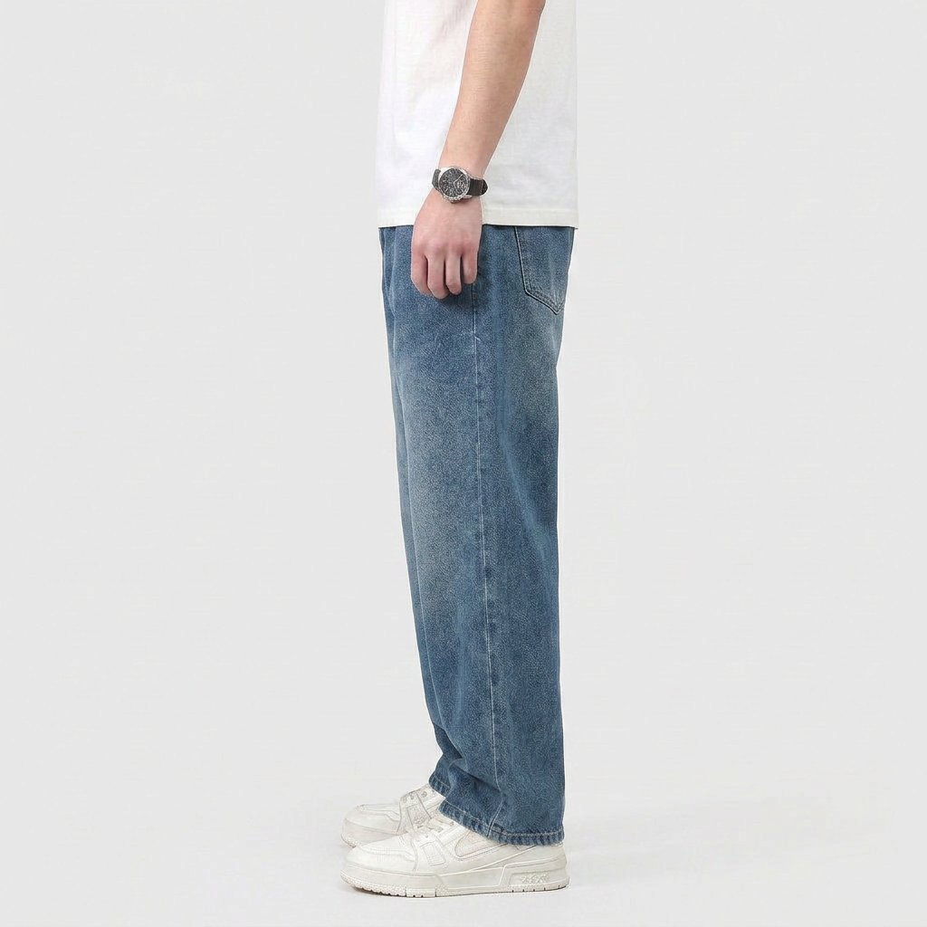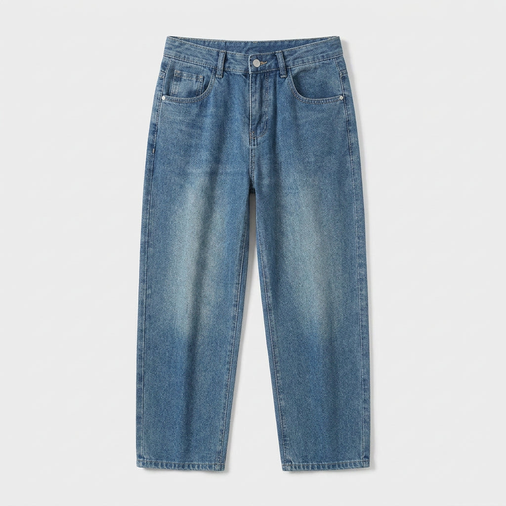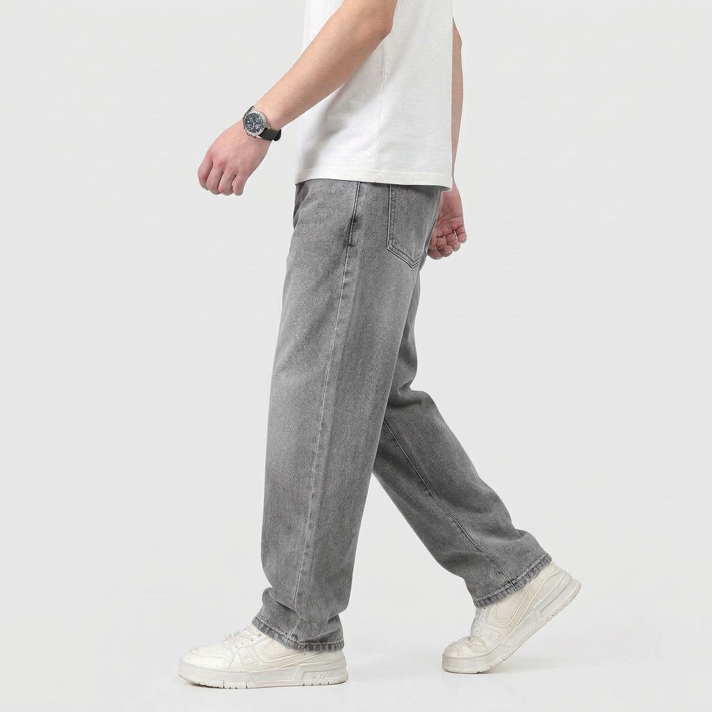 Men's High Waist Straight Leg Wide Denim Jeans