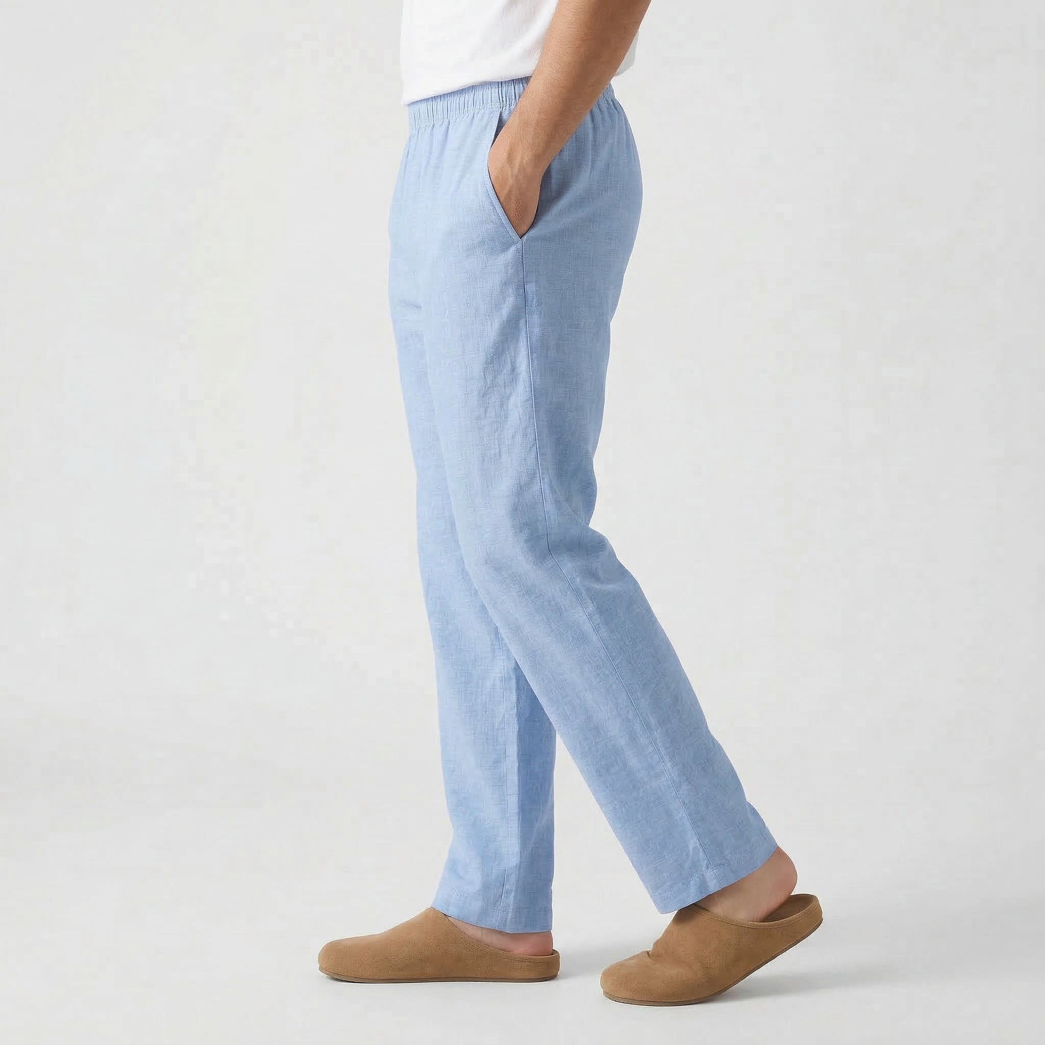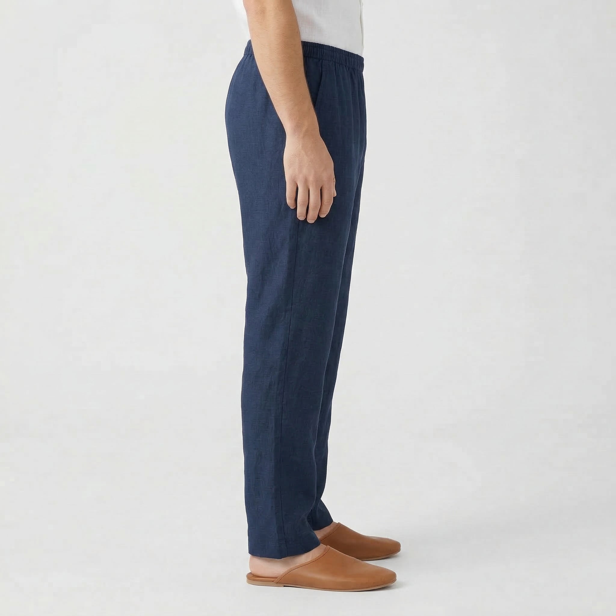 Men's Elastic Waist Straight Leg Relaxed Fit Linen Trousers