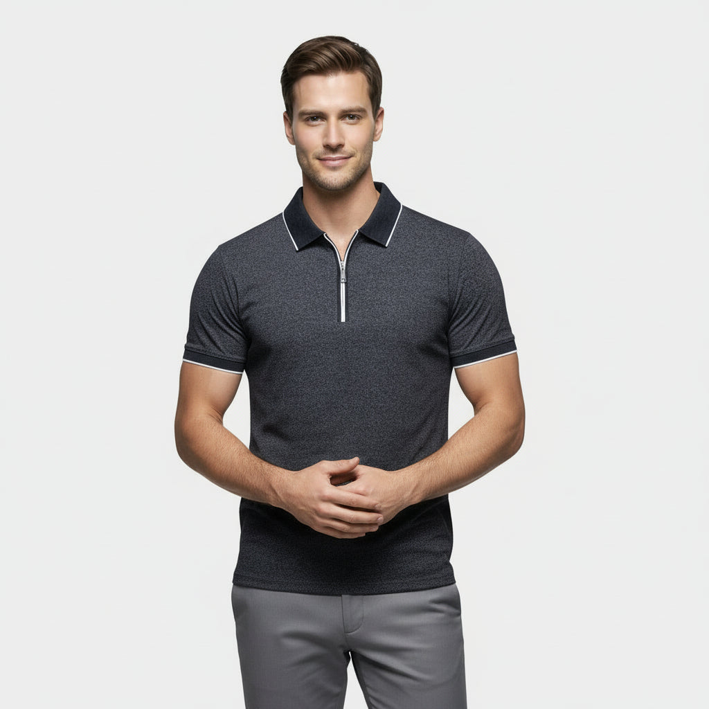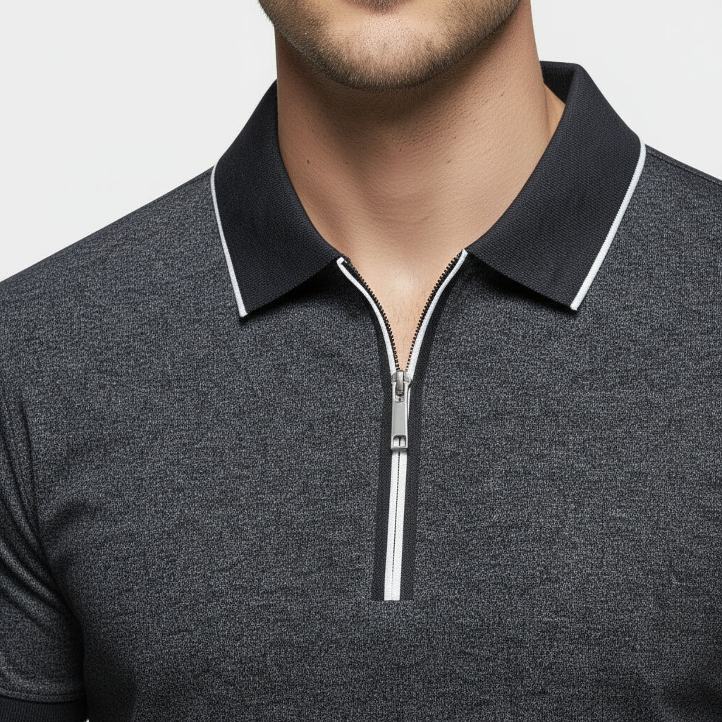 Men's Short-Sleeve Polo Shirt Half-Zip Contrast Collar Textured Finish Regular Fit