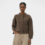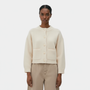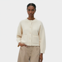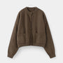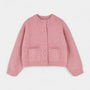 Ce cardigan pour femme en maille de laine offre une silhouette nette avec une coupe légèrement ample et des épaules tombantes pour un tombé naturel. Le col rond côtelé et les finitions en bord-côte aux poignets et à l’ourlet apportent de la tenue, tandis que le boutonnage sur le devant, ponctué de boutons recouverts ton sur ton, garde une ligne sobre. Deux poches plaquées à l’avant complètent le modèle, pensé pour se porter aussi bien sur un top ajusté que sur une chemise ou une robe.