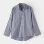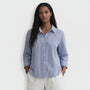 Cette chemise boutonnée pour femme présente une allure raffinée définie par son motif à rayures verticales et son col structuré.