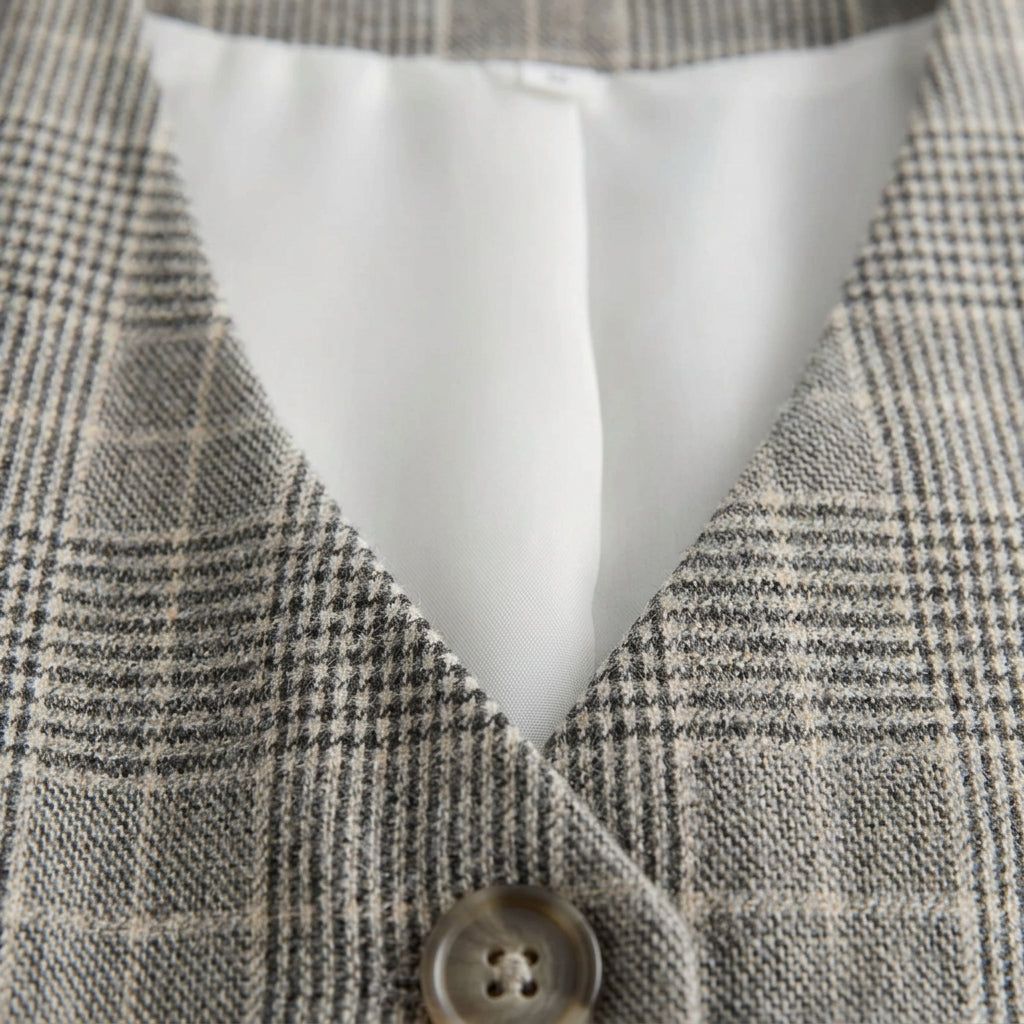 La mise à niveau facile : un gilet tailleur à carreaux pour une allure soignée.