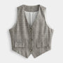 Ce gilet tailleur à carreaux pour femme offre une allure structurée et raffinée avec une touche moderne. La fermeture boutonnée à l’avant, l’ourlet pointu et les poches à rabat créent une esthétique nette inspirée du vestiaire masculin, tandis que l’encolure en V maintient une silhouette épurée et définie. Le motif à carreaux apporte de la profondeur visuelle, et la coupe tailleur suggère une coupe régulière qui s’ajuste proprement au corps. Portez-le par-dessus une chemise nette ou un haut ajusté pour apporter une finition soignée à des tenues décontractées ou plus habillées.