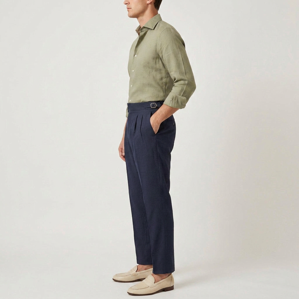 Pantalon Taille Haute Double Pince Boucle Latérale pour Homme