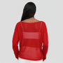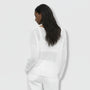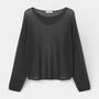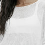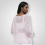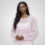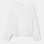 Le motif en maille ouverte crée une subtile profondeur visuelle sur la surface, tandis que les épaules tombantes et les manches plus longues contribuent à une silhouette doucement drapée.
