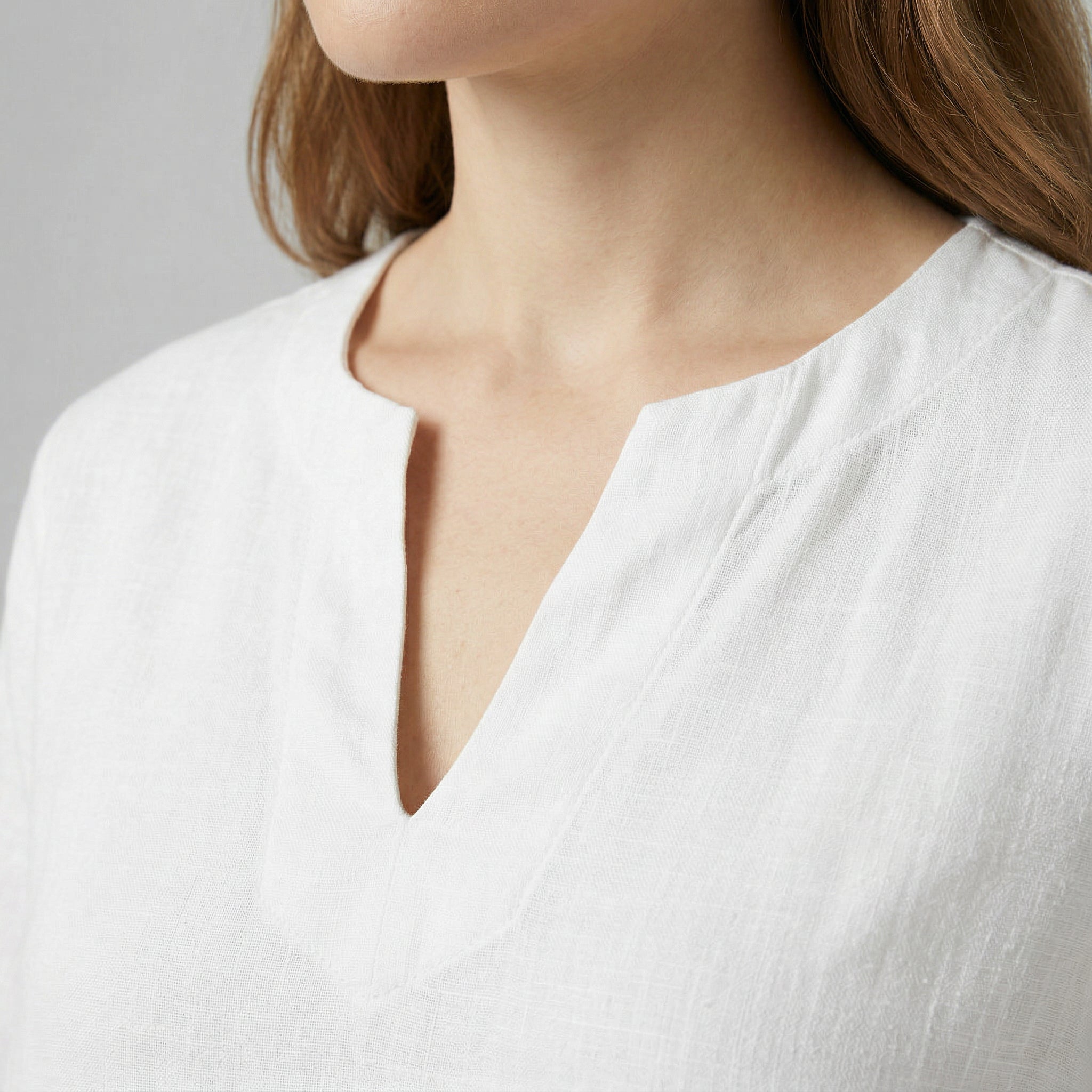 - Encolure V échancrée : crée un point focal défini pour un rendu plus épuré.
