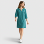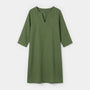 Cette robe droite pour femme à col V présente un design net et minimal avec une encolure V légèrement échancrée et des manches trois-quarts. La silhouette droite tombe jusqu’à un ourlet au niveau du genou, créant une forme équilibrée et raffinée. De subtils détails de couture près de l’encolure apportent de la structure tandis que la finition de couleur unie maintient une allure soignée et polyvalente. Portez-la avec des chaussures plates pour une tenue décontractée en journée ou associez-la à des talons pour une allure plus habillée.