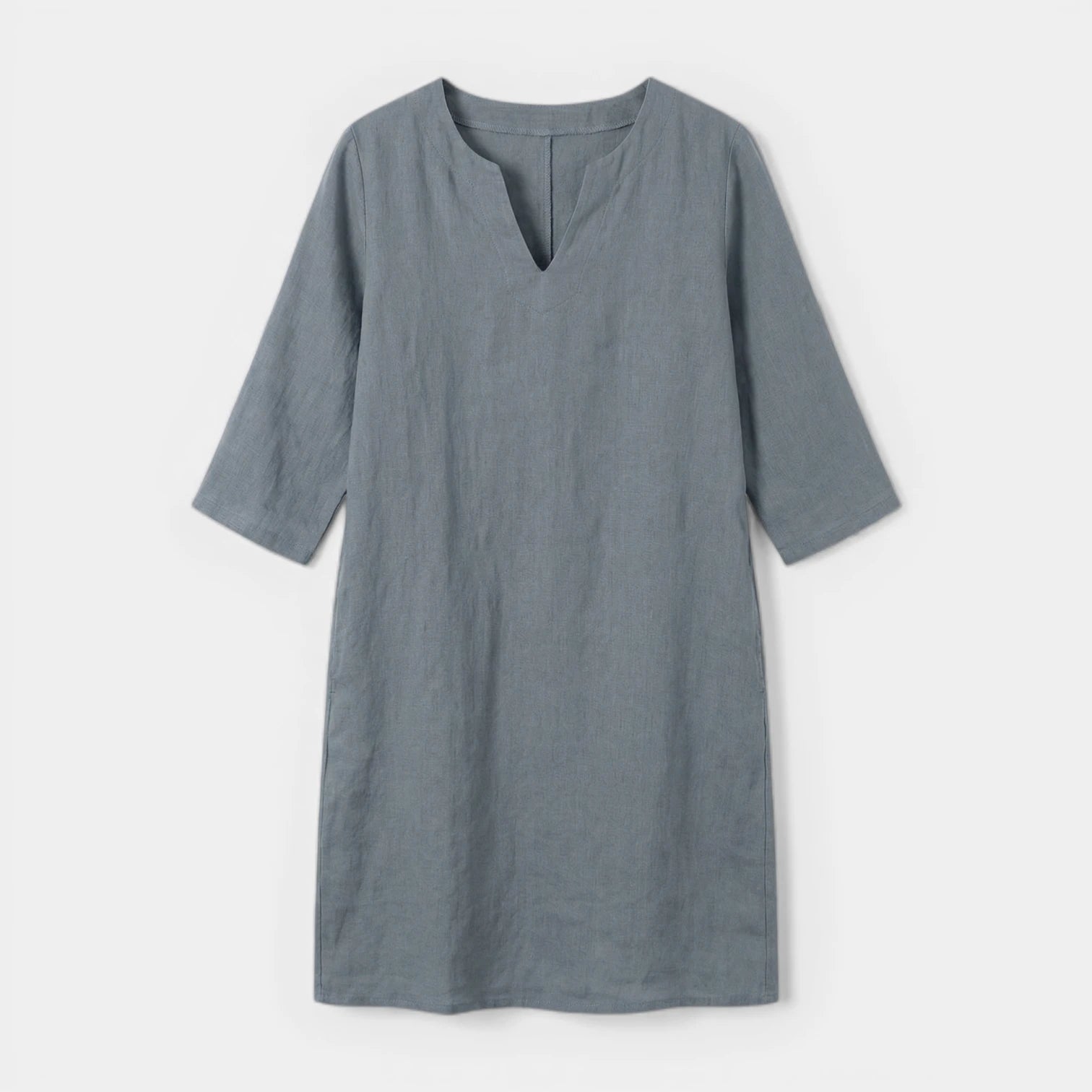 Robe Midi Femme Col V – Manches 3/4 Silhouette Épurée