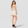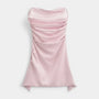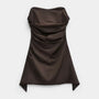 Cette robe mini bustier pour femme présente une silhouette élégante définie par un drapé souple sur le devant du buste.