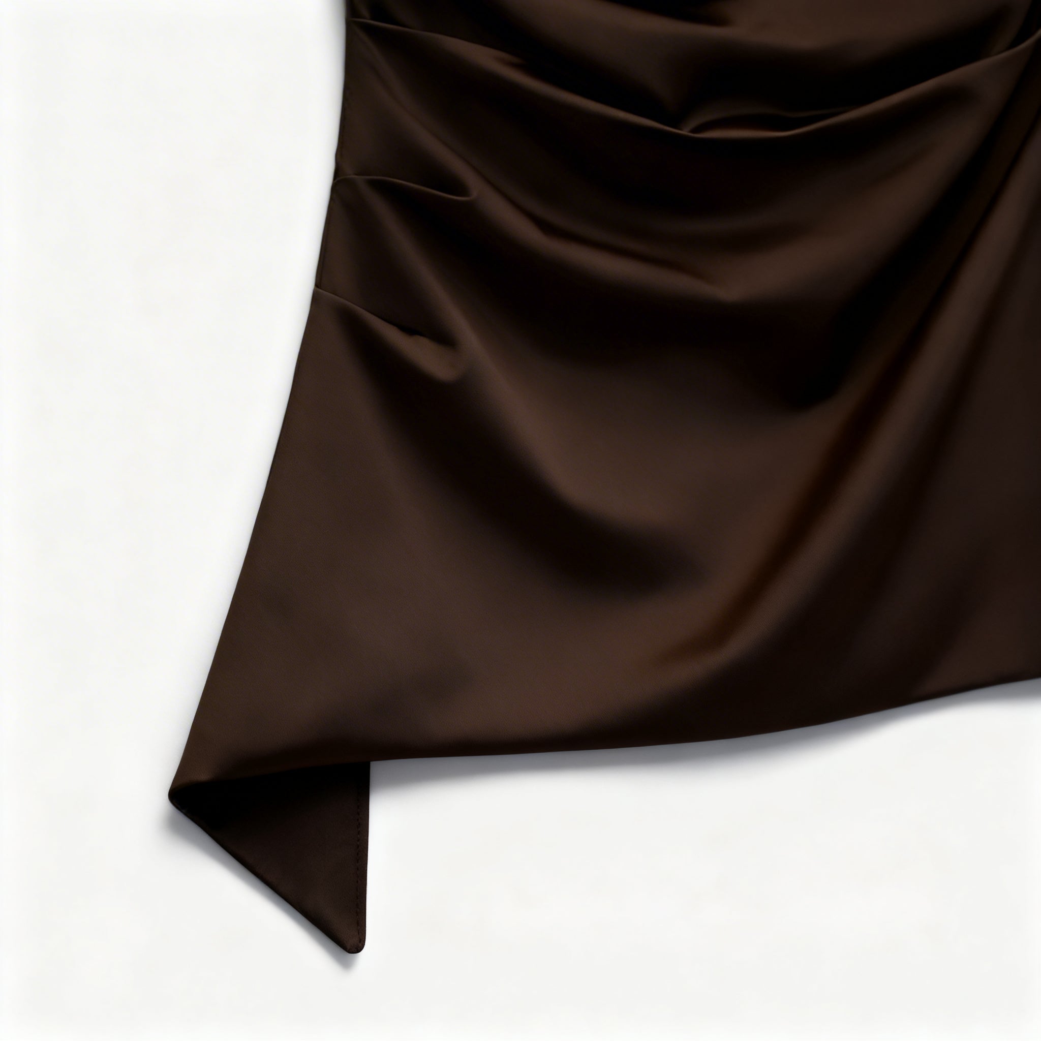 - Buste drapé à l’avant: plis superposés sur le panneau frontal créant de la profondeur visuelle et une apparence sculptée.