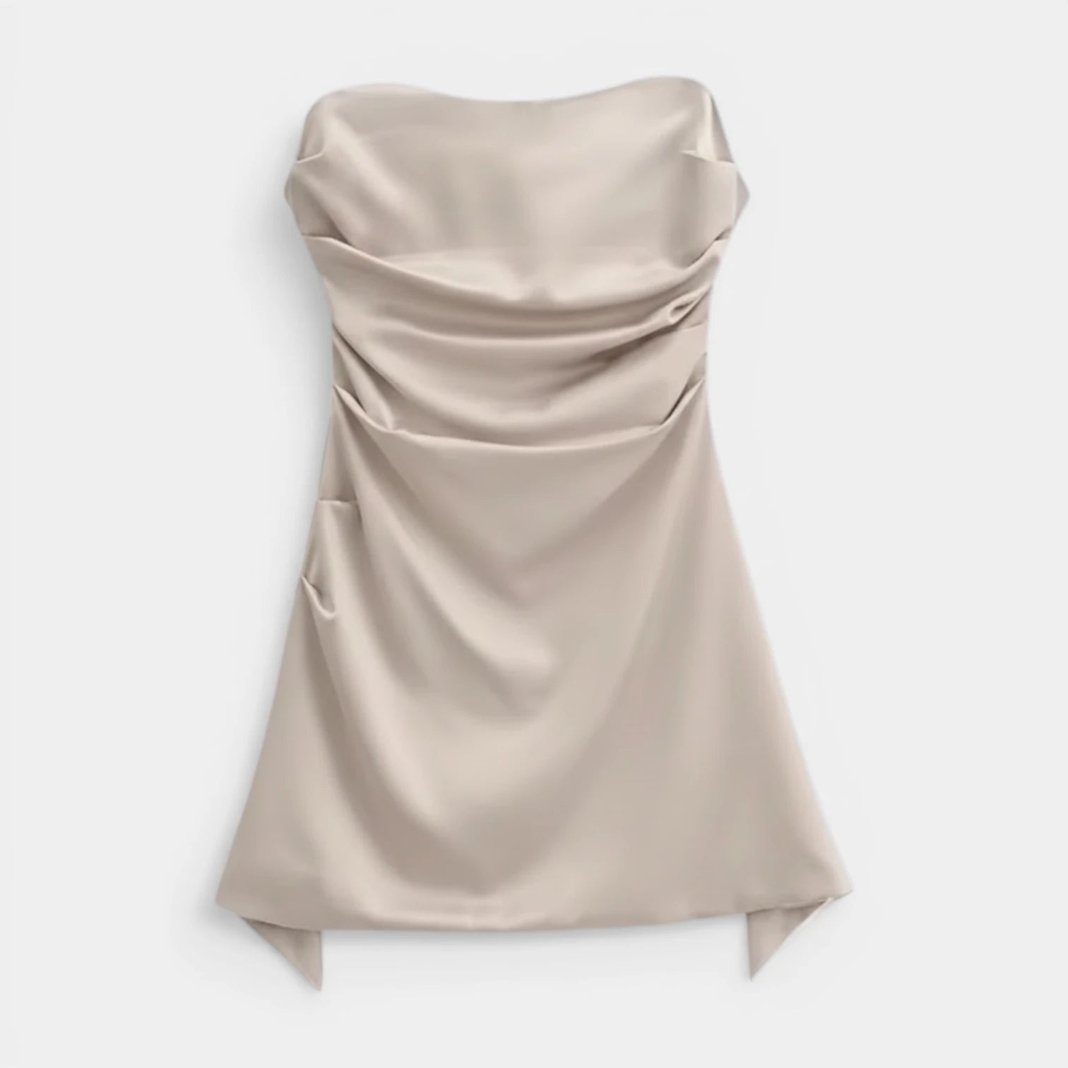 Une interprétation raffinée de la robe mini-bustier avec une finition soignée.