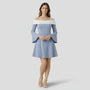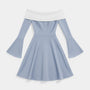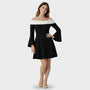 Cette robe mini à épaules dénudées pour femme présente une large encolure repliée qui encadre les épaules avec une ligne nette et structurée. Conçue avec de longues manches évasées et un corsage ajusté, elle se prolonge vers une jupe légèrement évasée pour une silhouette équilibrée. La couture de taille définie met en valeur la forme, tandis que la finition lisse en couleur unie maintient un design épuré. Portez-la avec des talons ou des chaussures plates minimalistes pour une tenue raffinée du jour au soir.