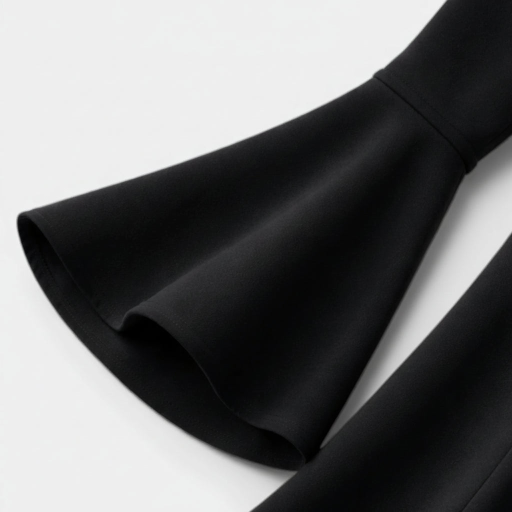 - Manches longues évasées: ajoutent de la dimension pour équilibrer le corsage ajusté avec un mouvement subtil.