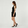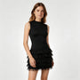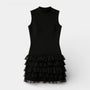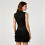 Cette robe mini sans manches pour femme présente une silhouette moderne et raffinée définie par un col montant et un buste ajusté. La partie supérieure épurée contraste avec une jupe à volants superposés qui apporte de la dimension et du mouvement à la partie inférieure. Plusieurs niveaux froncés créent un effet de texture visuelle tout en formant une silhouette mini équilibrée. Elle s’associe naturellement avec des talons ou des ballerines pour composer des tenues élégantes.