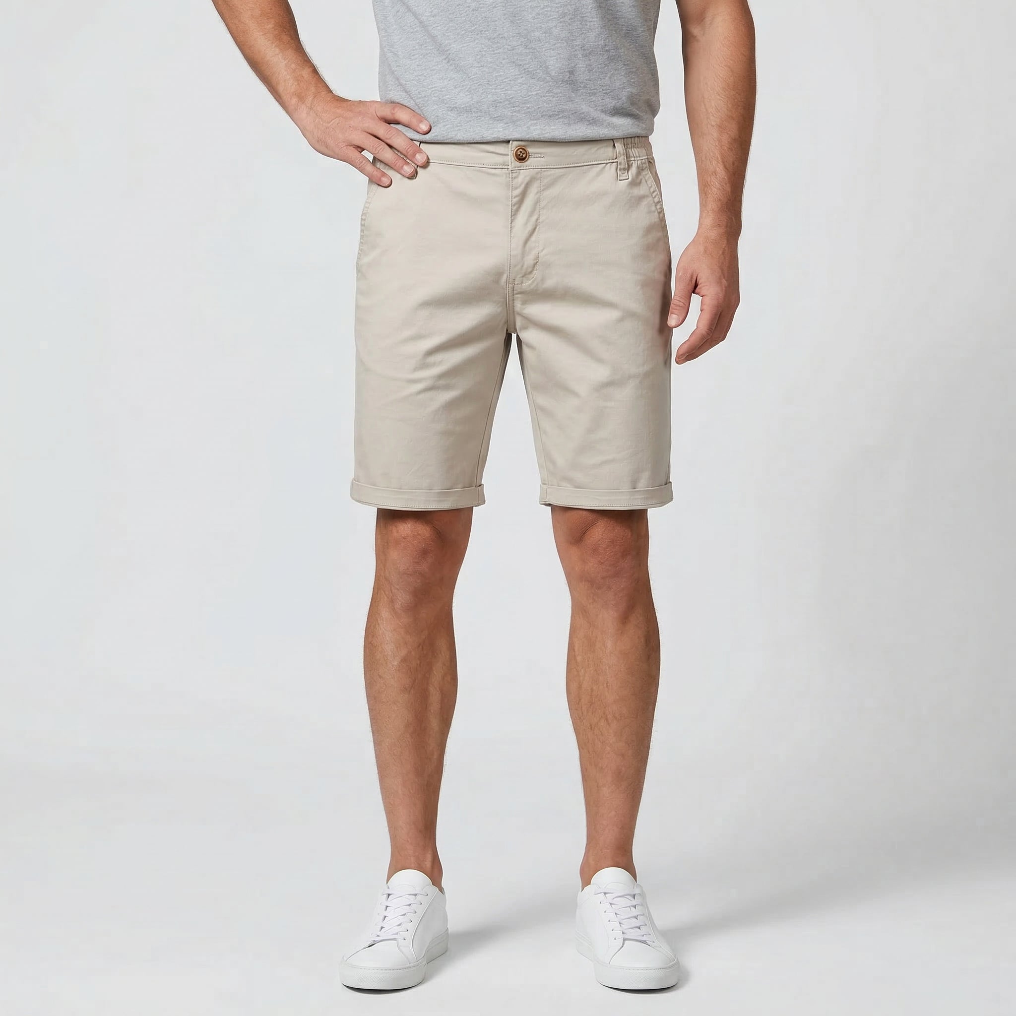 Short Homme Coupe Tailleur Fermeture Bouton Taille Élastique Coupe Droite